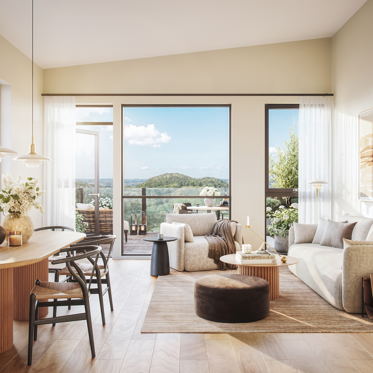 Romslige stuer med god plass til å samle mange gjester til uforglemmelige middager og hyggelige sammenkomster. Nyt den spektakulære utsikten